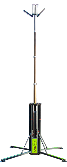 The K45 360° LED Lighting Tower is a mobile lighting unit designed to provide broad area illumination in outdoor or indoor work-site environments. It features an extendable mast and integrated LED heads suitable for temporary lighting needs.